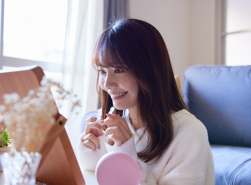 矯正治療に用いるマウスピースは透明で目立ちにくいため、装着していることがほとんど気づかれません。そのため、仕事柄人前に立つ機会が多い方や、見た目を重視される方に選ばれています。