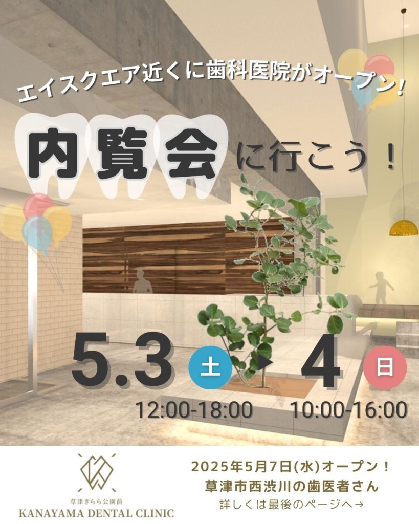 場所: KANAYAMA DENTAL CLINIC 〒525-0025 滋賀県草津市西渋川1丁目21−14 2階