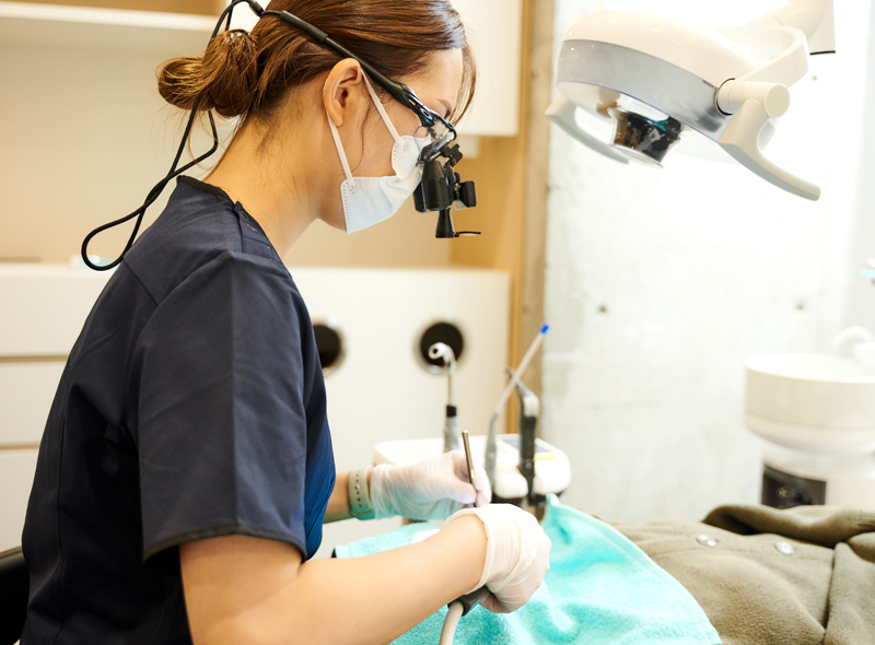 歯周病の要因であるプラークや歯石を丁寧に除去します。しかし、中程度の歯周炎では歯周ポケットが深くなっているため、深部の歯石を完全に除去することが困難な場合があります。そのようなケースでは、外科的な処置を実施し、麻酔を用いた上で歯肉縁下のプラークや歯石を徹底的に除去します。